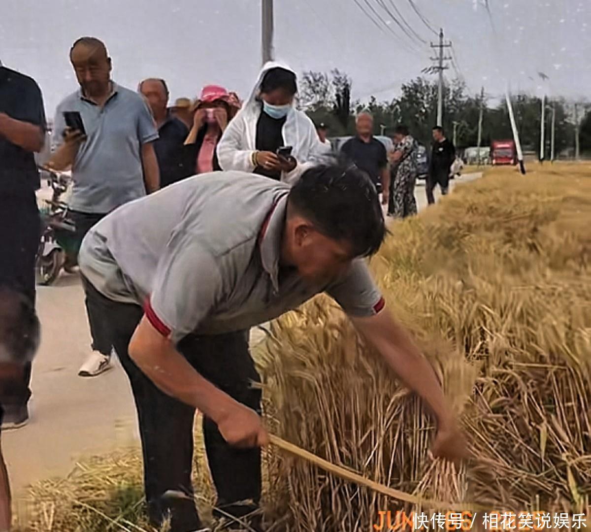 这是大衣哥在收割倒伏的麦穗,每一个麦穗齐要收割回家不可滥用,看大衣哥头戴凉帽手挥镰刀,毕竟这些年来身体发福不少,是以弯腰有些而已,看傍边的东说念主莫得几个拍摄的,他们应当齐是搭客,往年收割小麦,那是有几十名拍客拍摄,田间地头就像拍大片似的。